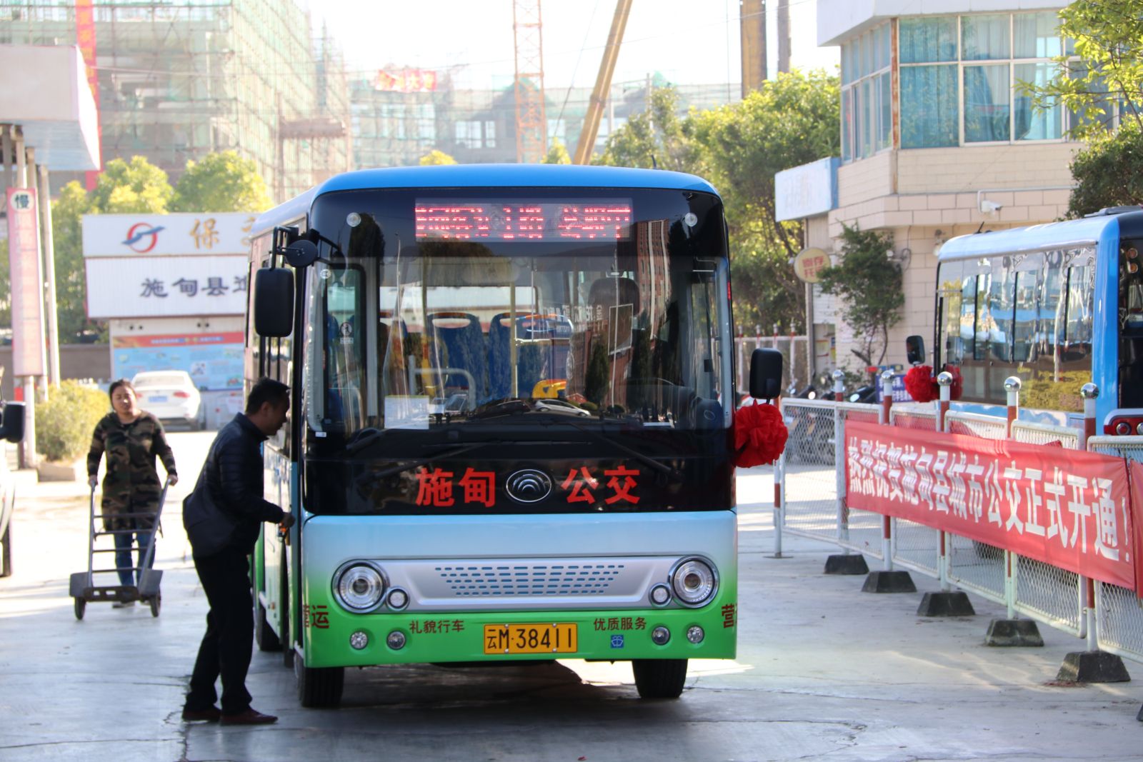 28日10点,施甸县首班公交车从三馆出发,从施甸客运站途经中医院——检测站(惠民公园)—中宏阳光城(月亮湖公园)—青少年活动中心(兰溪苑)—电影院(文化广场)—老机械厂—电影院(文化广场)—天天乐购物广场—交警大队—电信公司—三馆(南侧入口)—甸河湾(北门)—张家村—团树—金雨庄—大竹棚村—角里村—新客运站—仁和街—沙墩桥—勒平村,到职中桥。施甸公交的开通,为广大人民群众出行提供方便,保障施甸县城市公共交通安全、便捷出行。